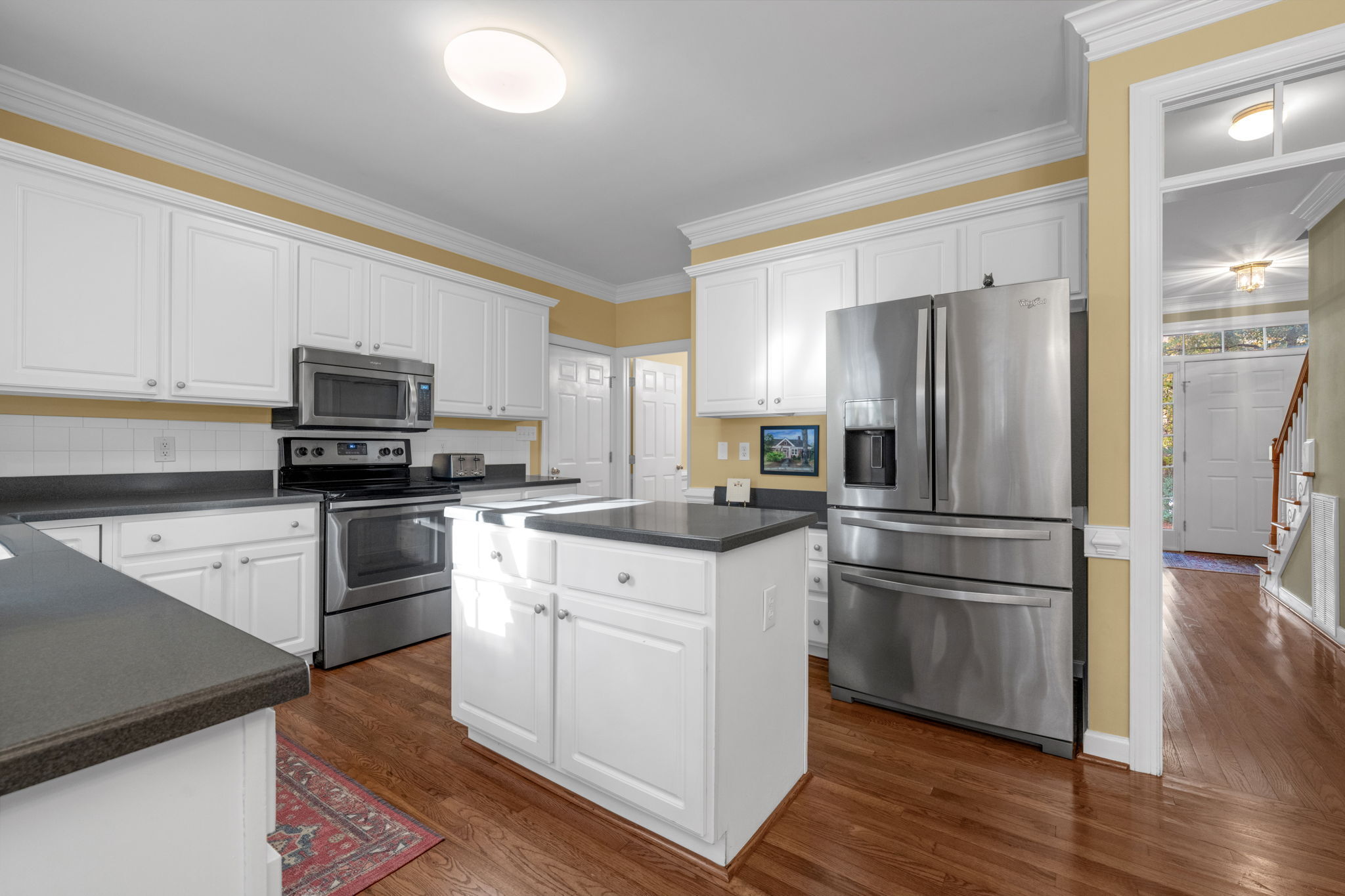 Experience the perfect balance of comfort and sophistication in this beautifully designed home, where modern convenience meets timeless style. Every detail has been thoughtfully crafted to support both relaxed everyday living and effortless entertaining. At the heart of the home, the kitchen features stainless steel appliances, a center island, and plenty of space to inspire your culinary creativity. Enjoy peaceful mornings in the bright breakfast area with easy access to your private deck and patio—ideal for al fresco dining or quiet moments outdoors. The formal dining room, adorned with wainscoting and crown molding, sets the stage for memorable gatherings, while the adjacent living room or home office offers a versatile space highlighted by elegant transom doorways. The primary suite provides a serene retreat, complete with a walk-in closet and a comfortable area for unwinding. Gleaming hardwood floors flow throughout much of the main level, bringing warmth and character to every space. A spacious, unfinished attic offers endless potential for customization. Perfectly situated near I-540, the new Publix shopping center, and Buffaloe Road Athletic Park & Aquatic Center, this home captures the essence of refined, modern living.